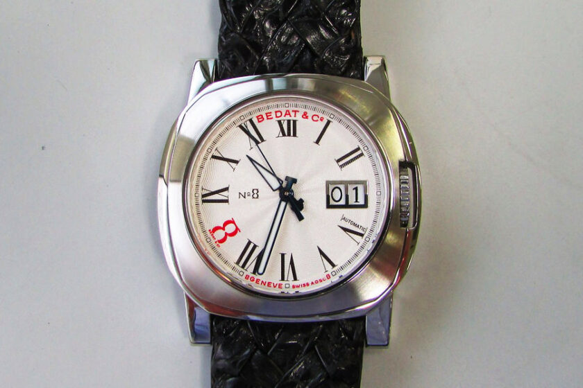 大きな傷と汚れが目立つBEDAT&CO NO,8の外装・美錠仕上げと分解洗浄を行いました。