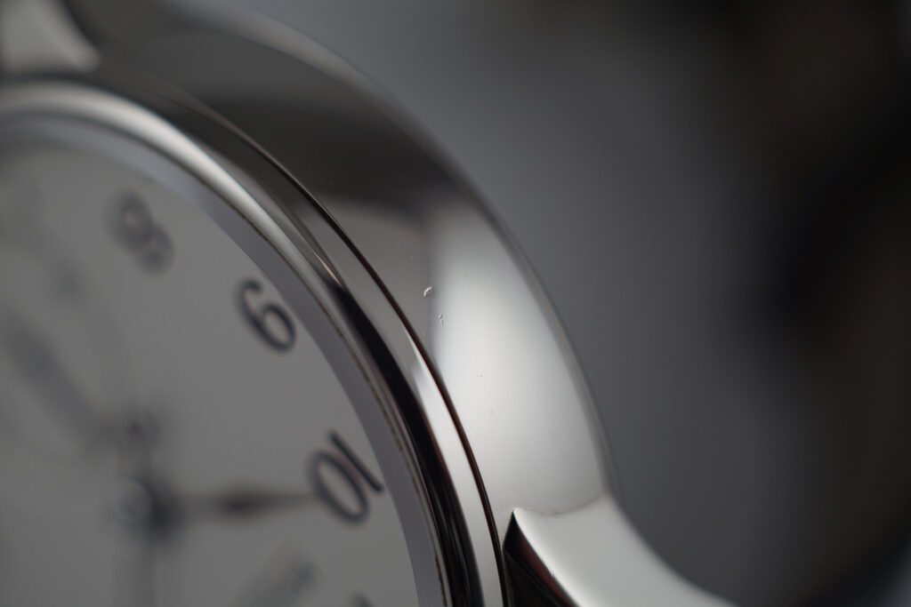時間の経過に伴い、内部機構の潤滑油が減少し、その結果として振り角が低下する問題を認識しました。これに対応するため、分解掃除(オーバーホール)を実施しました。さらに、ケースに見られた打痕や損傷を外装研磨により除去し、新たな輝きを与えました。