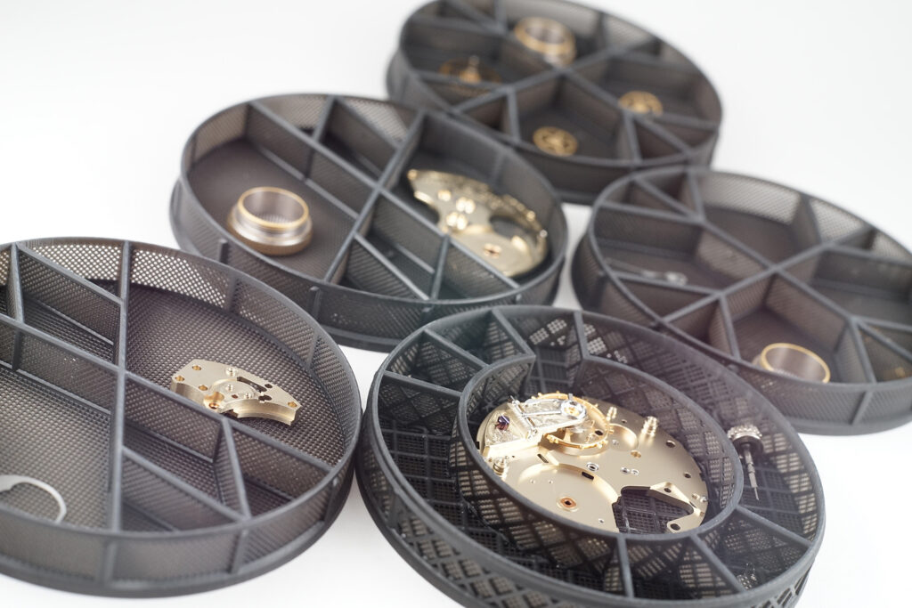 洋銀無垢で作られたムーブメントは極めて繊細であり、分解せずに洗浄すると、洗い残しが生じる可能性があるため、分解可能な部品は全て丁寧に分解し、適切な保護措置のもと洗浄を行います。