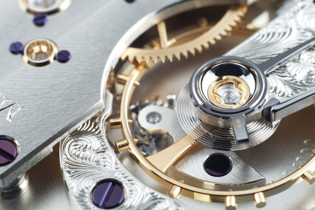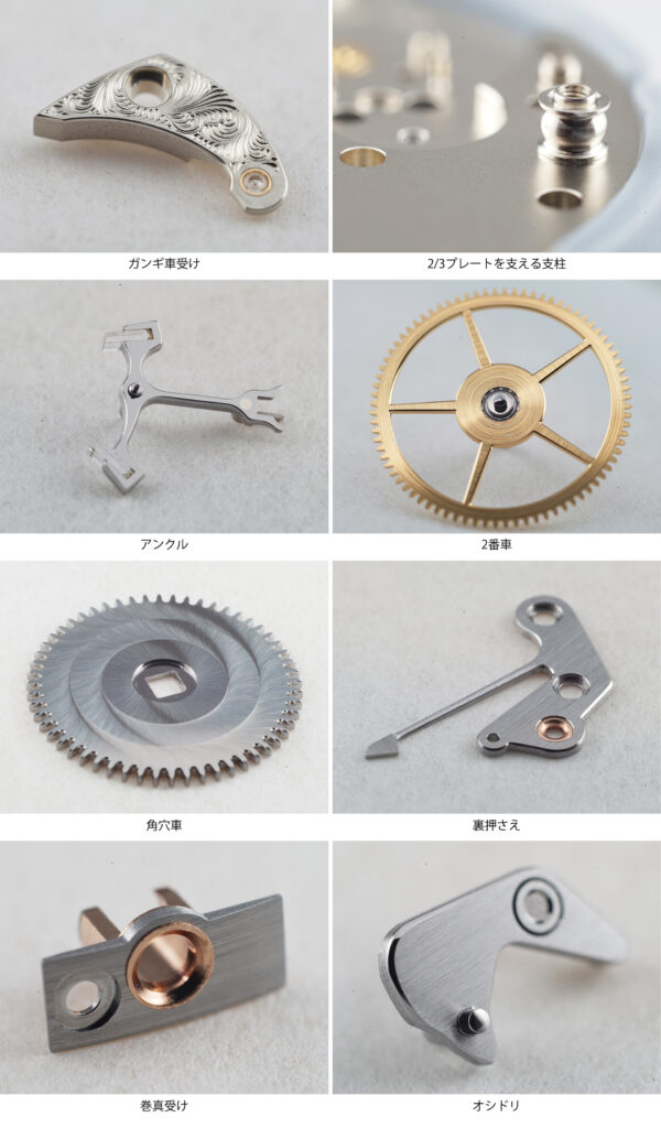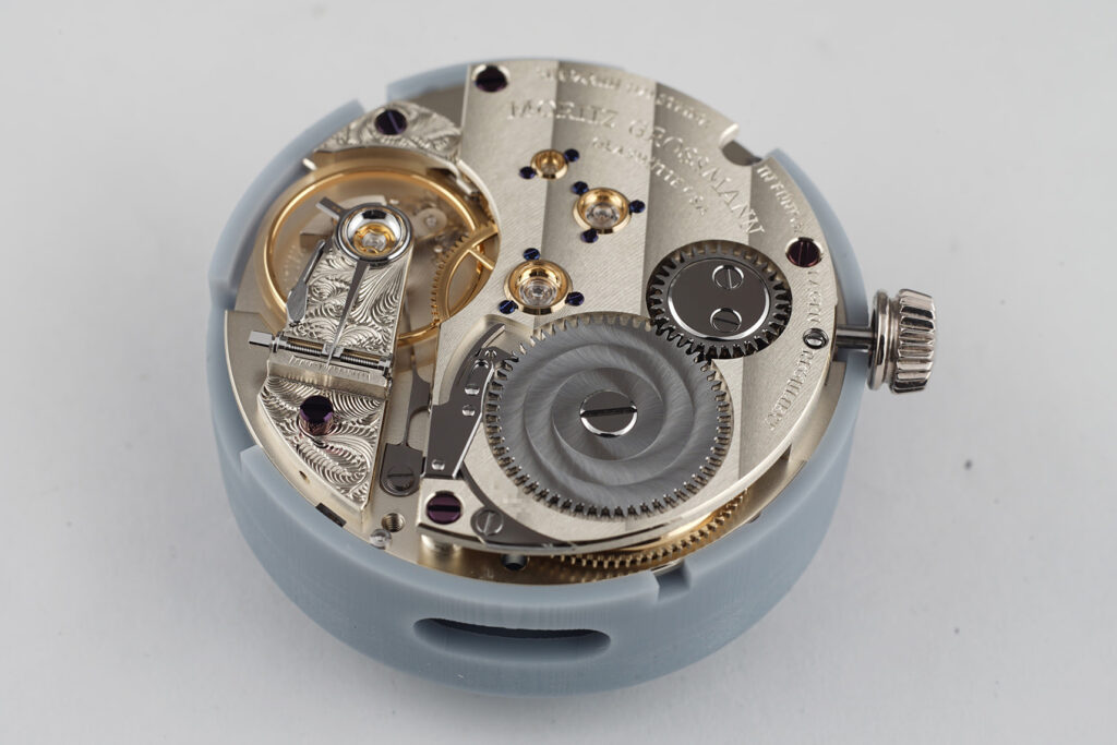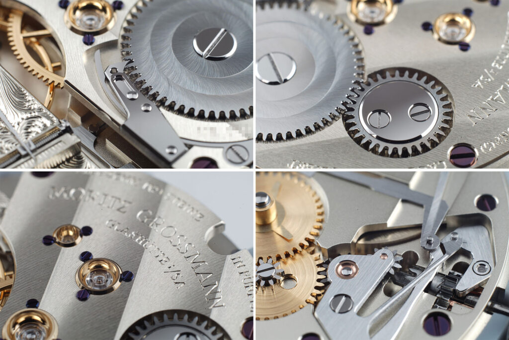 構成部品はすべて細心の注意を払って仕上げられており、歯車やアンクルの面取りも滑らかに磨かれています。これは、モリッツ・グロスマン社の製品に対する高い美的基準と丁寧な製造姿勢の表れです。