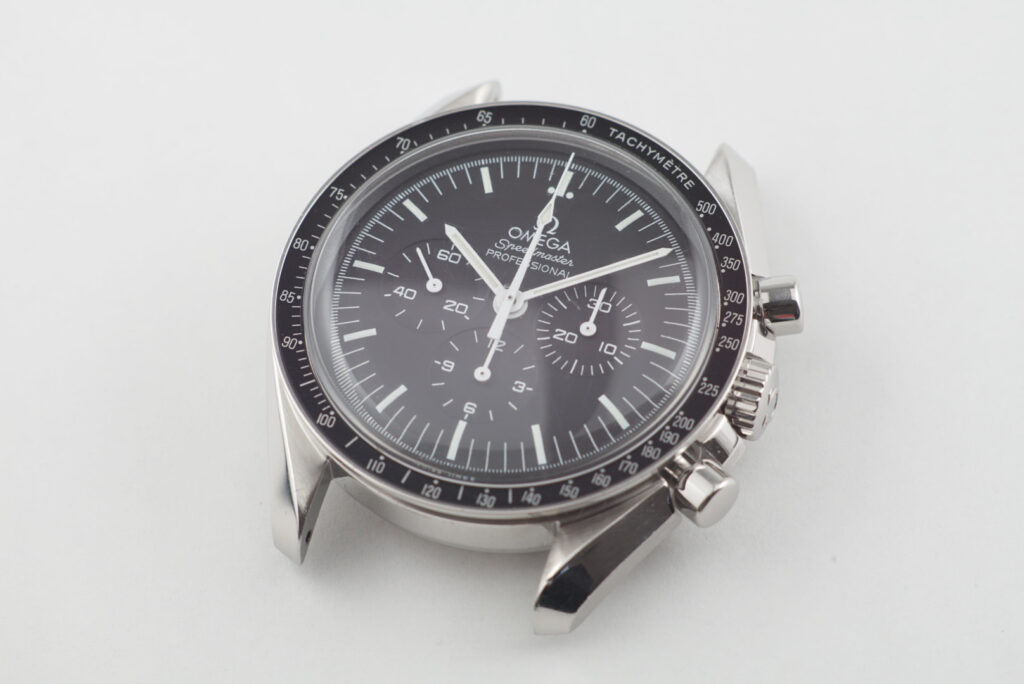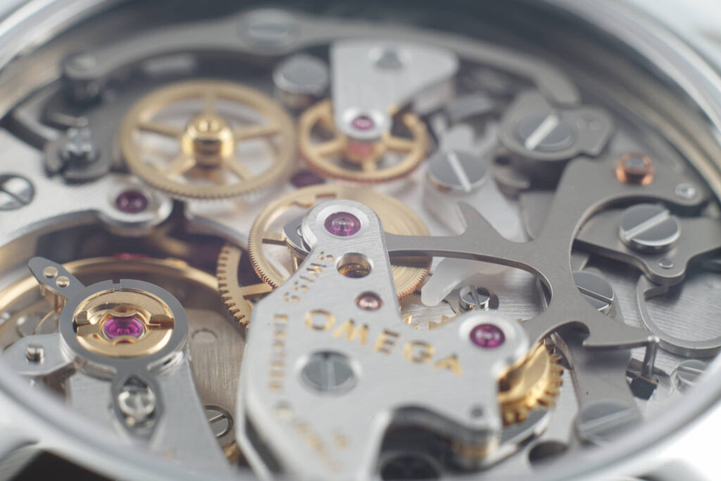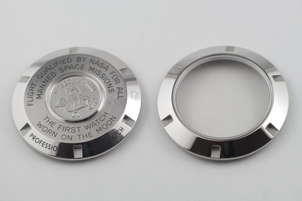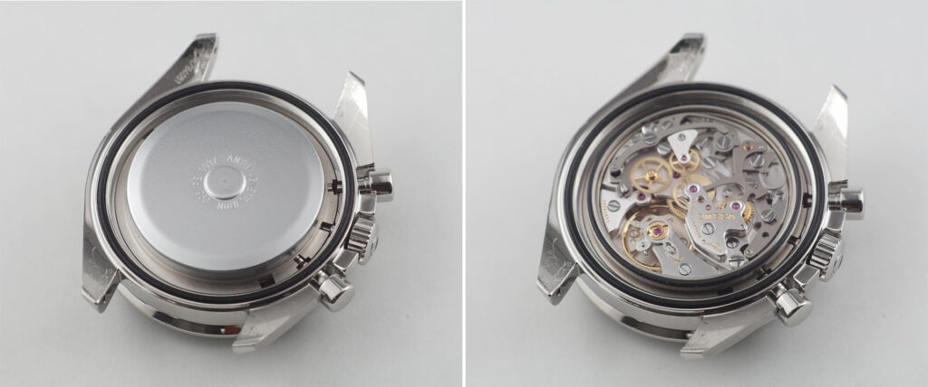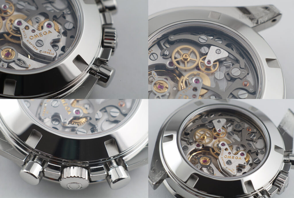 OMEGA(オメガ)社製のスピードマスター・コーアクシャル・クロノグラフに、シースルー裏蓋の製造と分解掃除を行いました。