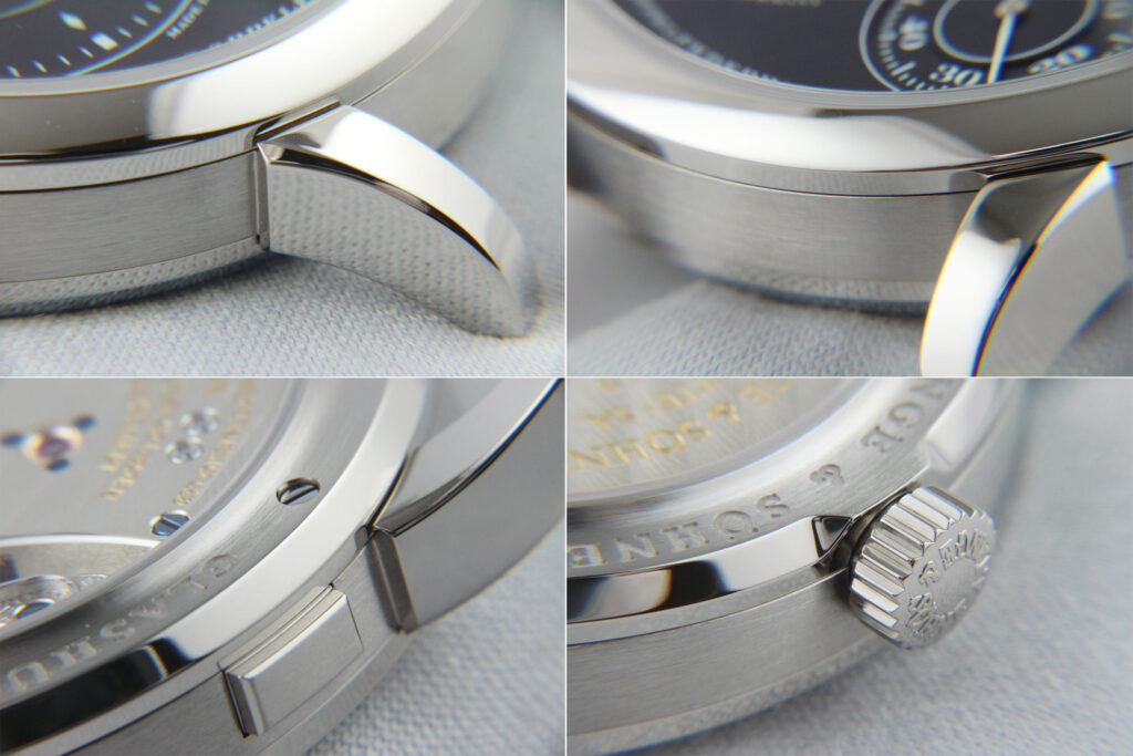 これにより、ランゲ1特有のシャープな面構成と質感を損なうことなく、美観を回復しております。